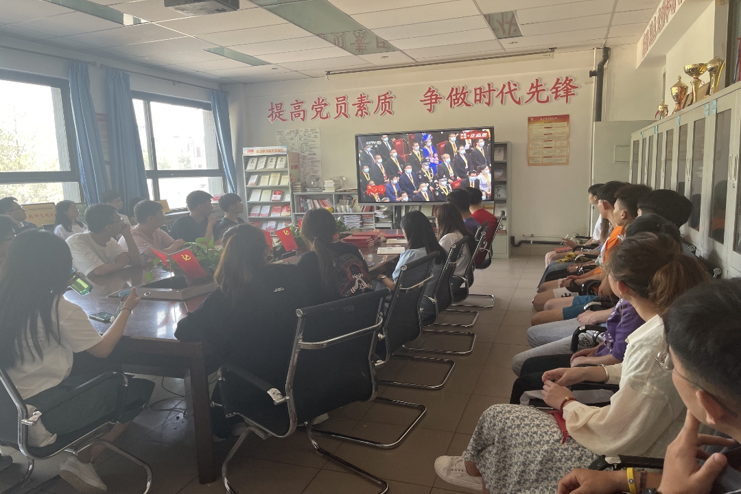 6月28日上午,8040威尼斯党委组织在校教工、学生党员在化工楼大屏幕、211、212等地集中观看“七一勋章”颁授仪式直播。学院教工党员20余名、学生党员95人共同观看了直播。