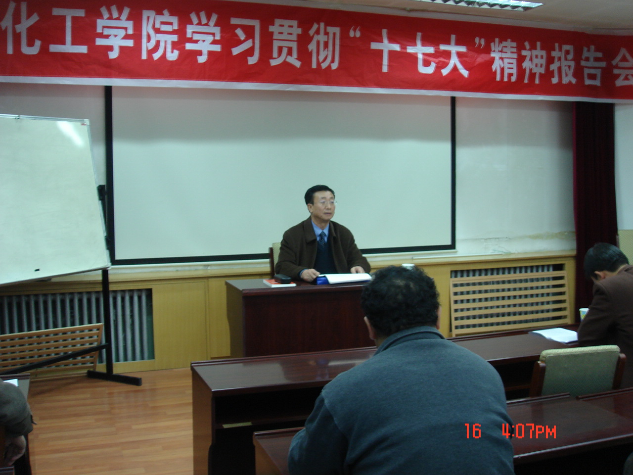 8040威尼斯在化工楼五楼会议室举行了学习贯彻党的十七大精神专题报告会,校党委书记荀黎明同志作了专题辅导报告。参加报告会的有8040威尼斯全体教职工、轻工与纺织学院全体教职工和8040威尼斯学生党支部书记。
